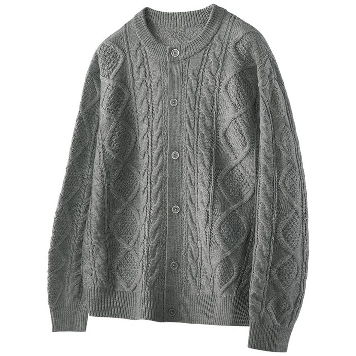 팀스핏 남성용 빅사이즈 오버핏 아란 케이블 라운드 니트 가디건 5Color