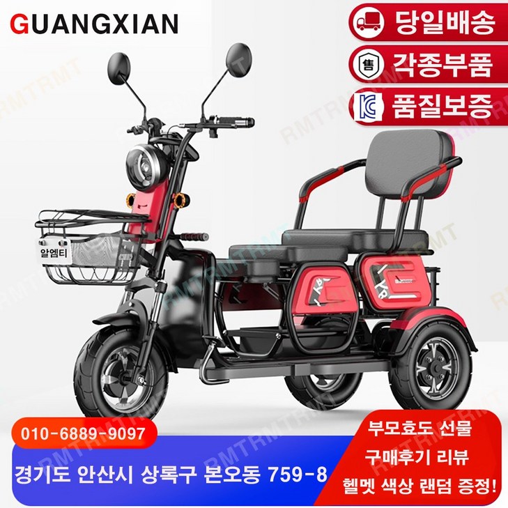알엠티 KC인증 삼륜 전동스쿠터 전동오토바이 노인 3륜 전기자전거 부모 선물 RMTAH12 충전기미포함