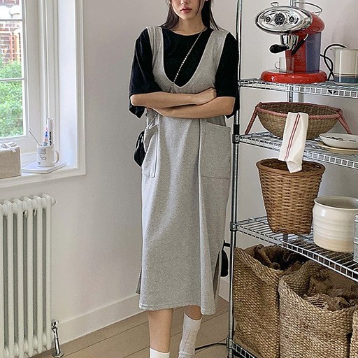 엘리즈데이 양브이포켓면멜빵원피스 여름 레이어드 넉넉한핏 면혼방 데일리 원피스 민소매