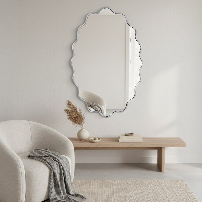 Fahomiss 타원형 벽걸이 거울 안깨지는 안전거울 예쁜 인테리어 벽거울 욕실 거울, 실버