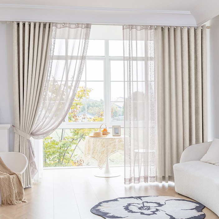 홈키안 나비주름 린넨 커튼 도톰차르르 비침없는 이음선없는 항균 방풍 거실 커텐