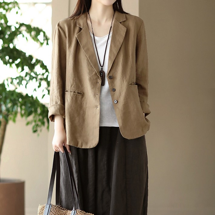 봄 여름 여성 린넨 데일리룩 긴팔 정장 캐주얼 자켓 통기성 아우터 다양한 색상 다양한 체형 룩편 안한 착용감