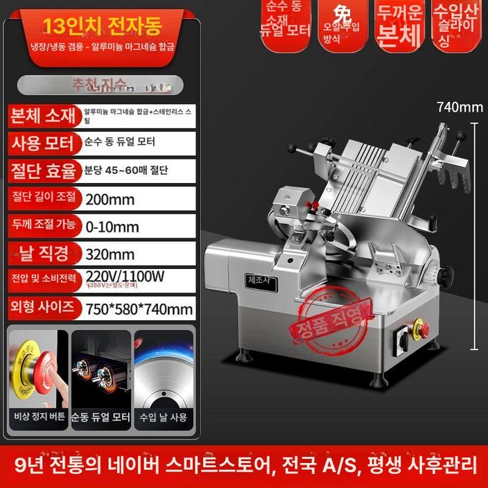전자동 육절기 고기 절단기 냉동육 슬라이서 전기식 썰기, 알루미늄 13인치 플래그십, 기본 색상