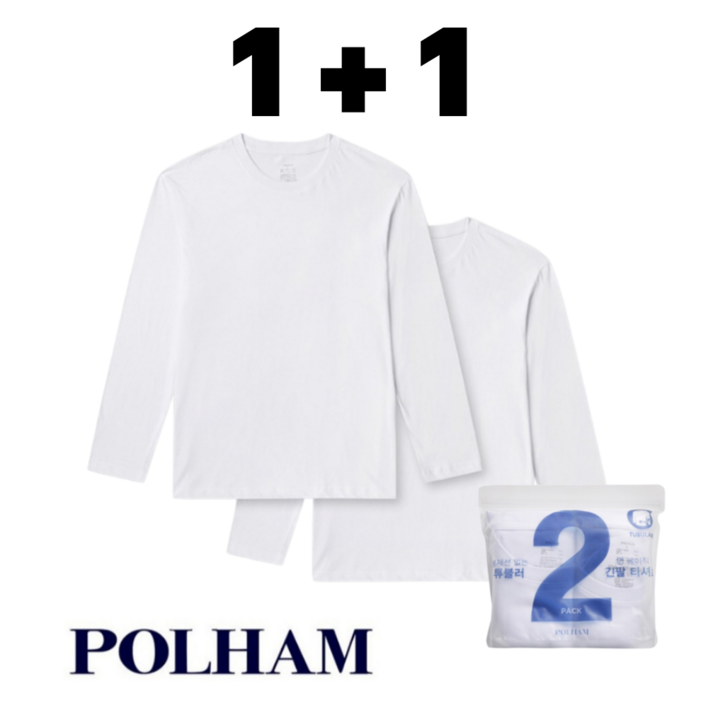 백화점 매장판 폴햄 기본 긴팔티셔츠 세트 11 면100 남자 여자 남여공용 무지 이너 커플 라운드 긴소매 반팔 티셔츠 2PCS 1세트