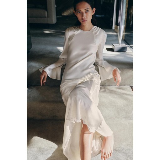 ZARA 100 실크 드레이프 원피스 스크래치 화이트