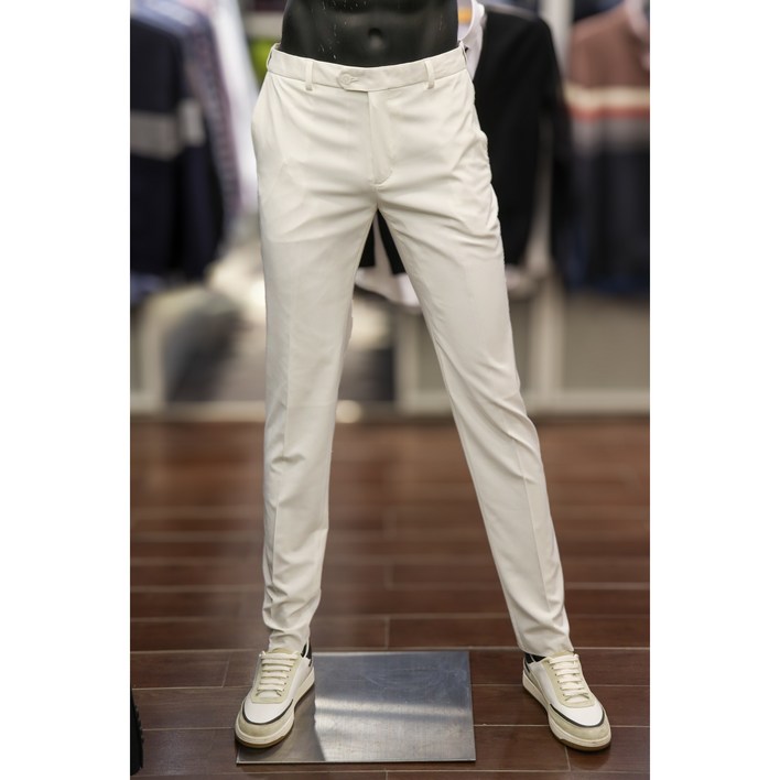 바쏘옴므 남성 화이트 히든밴딩 슬림 스판 슬랙스 바지 WSA2PS53