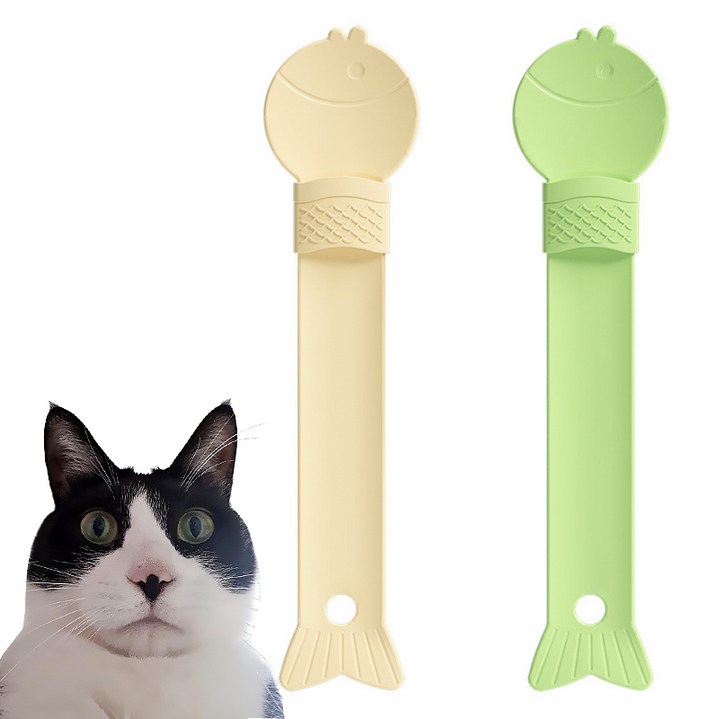 달달멍멍 고양이 물고기 츄르 와이드 스푼 2종 세트 스틱 간식 짜개 흘림방지, 1세트, 그린베이지