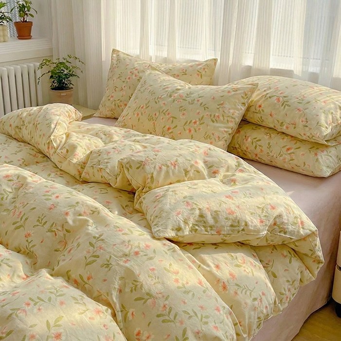 포근달 꽃무늬 워싱면 이불 고밀도 먼지없는 차렵이불 워싱면 극세사 사계절 이불