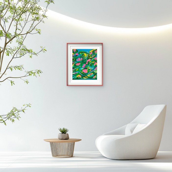 인테리어 액자 한정판 판화 300개 고화질 지클레 프린트 독일 하네뮬라 Bo Song송보경 현대미술 69 Logos Flower 8호 칼라액자 작가보증서포함 보송아트갤러리, 분홍