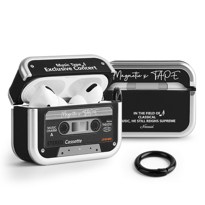 네쎄시드 카세트테이프 에어팟케이스 레트로 클래식, 블랙, 에어팟 프로3, 1개