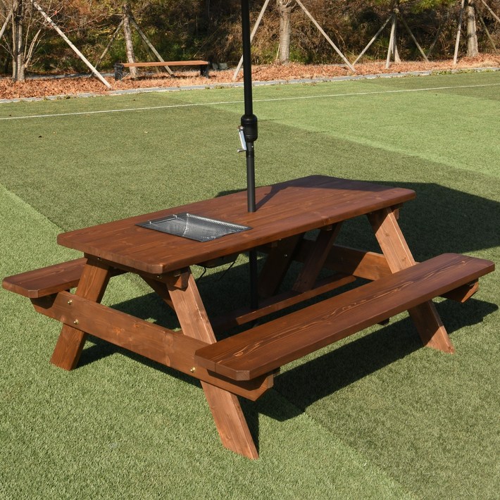 엉클트리 100 통원목 바베큐그릴 일체형 야외 테이블 강력 볼트체결 구조, 일체형바베큐형 무도색 4인용