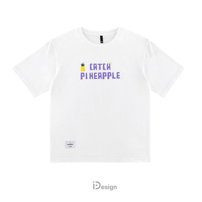 CATCHDEE 오리지널 디자인 신선하고 인기있는 보라색 PINEAPPLE 파인애플 화이트 반팔 티셔츠 남성용